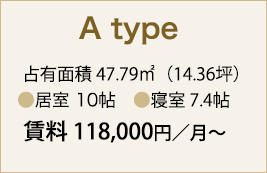 占有面積 47.79u(14.36坪)●居室 10帖 ●寝室 7.4帖