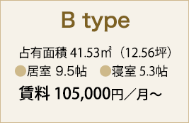 占有面積 41.53u(12.56坪)●居室 9.5帖 ●寝室 5.3帖